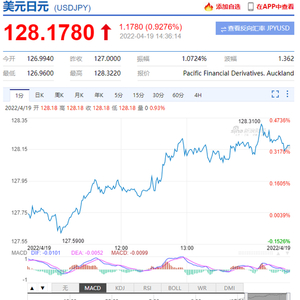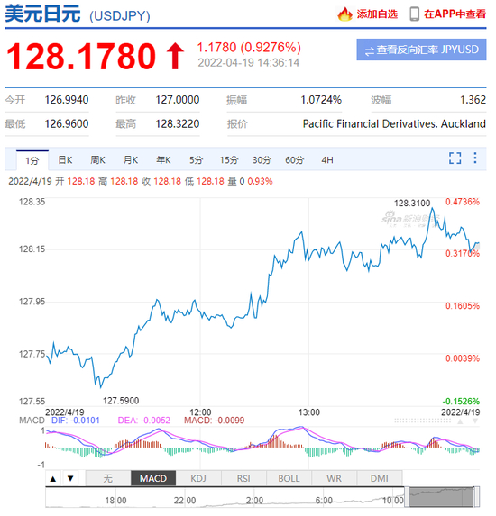 当地时间4月19日,东京外汇市场上日元对美元汇率跌破1美元兑换127日元关口,创下2002年5月以来近二十年的新低。截至发稿前,美元兑日元汇率为128.178.