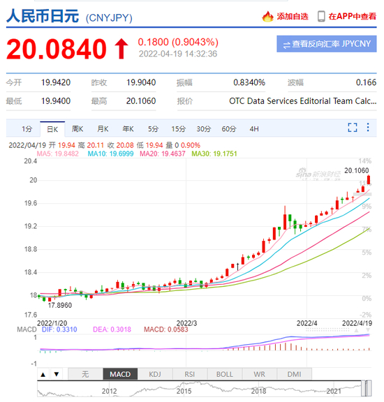 此外,当天,日元对人民币汇率也跌破了1人民币兑换20日元大关,时隔近7年新低。截至发稿前,人民币兑日元汇率为20.084。
