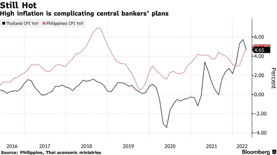 智通财经APP了解到,菲律宾四月消费者价格指数(CPI)同比上涨4.9%,是2018年12月以来最严重的通胀,反映了乌克兰冲突对交通和能源价格上涨的影响。泰国四月CPI同比上涨4.65%,略低于预期,但与上月创下的13年高点相比并没有下降多少。