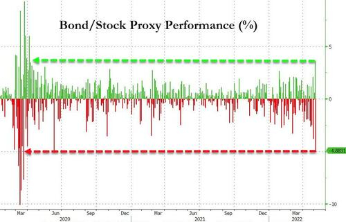 金融博客Zerohedge注意到,过去25年间只有两天发生过标普500指数期货跌3%同时10年期美债期货跌1%的情况,即2008年10月9日和2020年3月18日,说明股债正携手加速清仓。