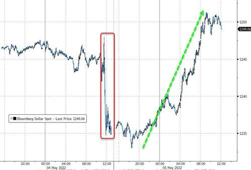 衡量美元兑六种主要货币的一篮子美元指数DXY重回二十年新高,盘中最高涨1.3%至103.04,刷新2002年12月以来高位,升破103并再度上逼104,周三曾跌0.9%创2020年11月来最大跌幅。