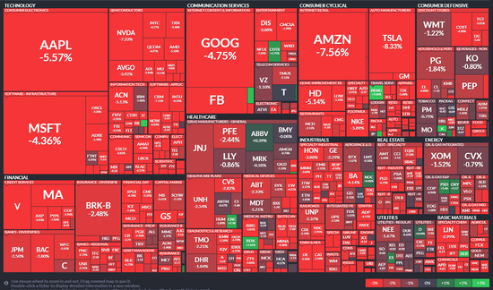 科技领跌,道指跌逾千点,标普跌3.6%,纳指盘中跌6%、收跌5%至2020年11月来最低