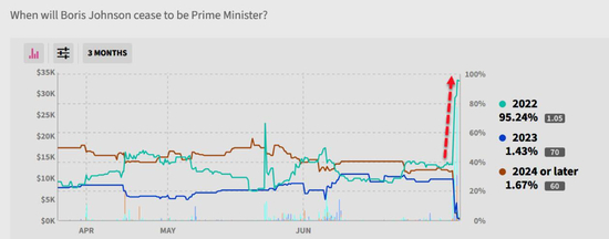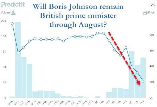 政治和金融事件线上预测网站PredictIt甚至显示,约翰逊到今年8月底以前辞职的几率超过70%。