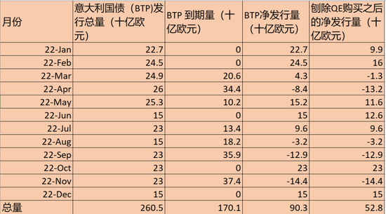 没有新的工具推出,ECB理论上依旧可以强调灵活运用PEPP的到期资金来进行再投资(即向意大利国债倾斜),如果这样的措施可以让意大利以外的海外投资者满意的话,(即这些投资者不会主动抛售意大利国债而只是到期之后做展期,考虑到自2021年7月以来,这些海外投资者已经累计卖出了约500亿欧元的意大利国债,而这也是自从那时起,意大利和德国国债息差走阔的原因之一(图表7))或许可以缓解“碎片化”这一问题。而在这种情况下,意大利的财政状况至少不大可能在今年就会出现问题,甚至出现市场最为担心的违约的状况(图表8):如图表8所示[7] ,意大利财政部今年上半年的债券净发行量约有700亿欧元,但考虑到欧央行的QE购债项目(APP+PEPP),实际的上半年的净发行量只有350亿欧元,鉴于来自于ECB的QE支持于今年7月已经结束,但意大利财政部前置的发债结构使得今年下半年的融资需求仅有170亿欧元。另外一边,我们假设ECB仅仅运用德国国债到期的资金来购买意大利国债,根据我们的测算[8] ,德国下半年会有约190亿欧元的PEPP债券到期[9] (下半年有共计950亿欧元的债券到期,而其中50%的持有者是德国央行,而PEPP占比QE持有的德国国债约为40%)。也就是说,仅仅来自德国国债的PEPP再投资资金就可以满足意大利下半年的财政需求(当然,在俄乌冲突近期导致天然气供应风险加大的背景之下,德国经济所面临的风险也很大,近期一系列经济数据也不尽如人意(详见《欧元/美元跌向平价可能性加大》)ECB最终能否会动用本来购买德国国债的资金去向意大利国债倾斜也值得关注)。当然,在这种情况下,我们认为市场大概率并不会满意(今年6月ECB会后欧元的明显走低表现就是市场给欧央行最好的答案),意大利德国国债息差面临再次走阔的风险,而欧元也大概率会承压走低。