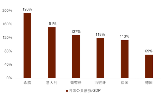 图表2:欧元区各国公共债务占比GDP(截至2021年年末)