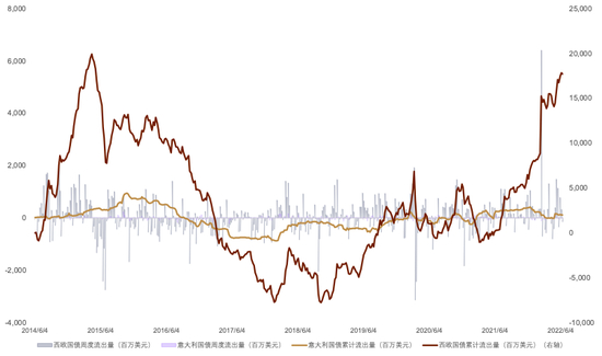 综上,我们认为欧央行即将推出的“新工具”将对意德息差未来的走势产生决定性的影响:如果这一“新工具”足够让市场安心,那么欧央行开启货币政策正常化的后顾之忧也就不复存在,欧元因而会受到ECB加息的支撑;根据我们的测算,自ECB在2014年6月实施负利率以来,共计有170亿欧元资金流出西欧主要国家国债市场(其中从意大利国债就净流出了1亿3千万美元)(图表13)。随着欧央行逐步开启货币政策正常化,国际资金大概率会重新回流欧洲债市,进而为欧元提供支撑。反之,如果本周欧央行没有推出“新工具”或者推出的“新工具”没能让市场满意,那么意德息差大概率继续走阔,而欧央行本轮加息也就很可能未必持续,这种情况下欧元大概率依旧会承压。