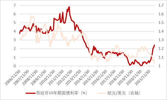 图表6:欧债危机期间西班牙10年期国债收益率大幅走高