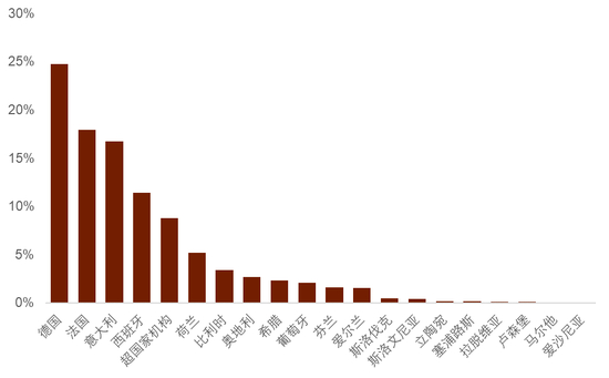 图表9:ECB在PEPP项目下的投资比例(capital key)