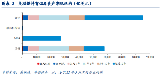 2、假设美联储缩表过程中,国债与MBS的缩表比例与目前资产负债表中的结构、以及目前已公布的缩表比例保持一致,即国债:MBS=2:1。