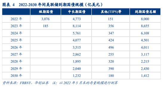 经测算,美联储本轮缩表周期总资产收缩规模或达到2.6-3.4万亿美元,节奏上每月国债/MBS缩减量分别在394-705亿美元/200-304亿美元。以这一节奏缩表,在近两年的时间内美联储自然到期的国债/MBS资产规模足以覆盖,并不需要FED主动出售资产。