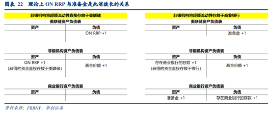 非银机构(如个人、货币市场基金MMF等):资产端主要为持有的国债/MBS等证券、存放在银行的存款以及存放在美联储的ON RRP余额;负债端主要为居民的基金份额。