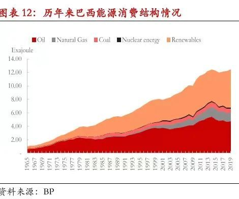 能源方面,除了是拉美重要的产油国之一,近年来巴西依靠可再生能源也实现了能源自足。自2013年以来,巴西化石能源消费呈逐年下滑态势,而可再生能源消费则快速扩张,到2019年巴西化石能源在整个能源消费中的占比在一半左右,水力发电占到28.7%,其他可再生能源占比在16%左右。
