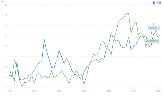 尽管巴西也受到全球商品价格上涨的波及,国内通胀持续升温,CPI同比最高值出现在今年4月,达到12%,但相较于阿根廷的恶性通胀,巴西在拉美国家中已经算是“尖子生”了。