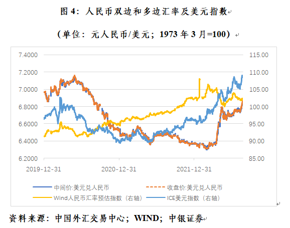 这波调整与4月底的原因基本相同:一是美元走势较强。美联储紧缩预期叠加欧元区滞胀风险上升,推动美指重新升至二十年新高,8月15~26日累计上涨3.0%,今年以来累计上涨13.4%。同期,万得人民币汇率预估指数基本持平,今年以来累计下跌0.3%(见图4)。可见,这依然不是人民币弱,而是美元太强。