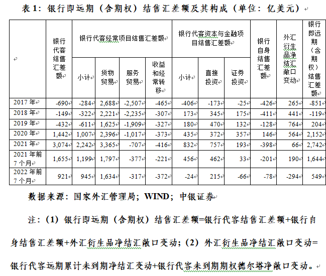 贸易结售汇顺差转化银行结售汇总顺差的效率,则还要看其他渠道的外汇供求状况。前7个月,银行代客货物贸易结售汇顺差1634亿美元,被同期代客服务贸易、收益和经常转移、证券投资、银行自身结售汇逆差,以及外汇衍生品净结汇敞口下降等,合计1126亿美元,抵消了68.9%。去年同期,货物贸易结售汇顺差1797亿美元,前述各项合计逆差575亿美元,仅抵消了32.0%(见表1)。