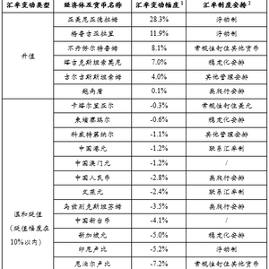 注:(1)汇率变动幅度为2020年末至2022年上半年末该货币对美元汇率变动率,正值代表升值,负值代表贬值;(2)汇率制度安排来自IMF《2021年汇兑安排与汇兑限制年度报告》,“/”代表报告中未提及该货币的汇率制度安排。