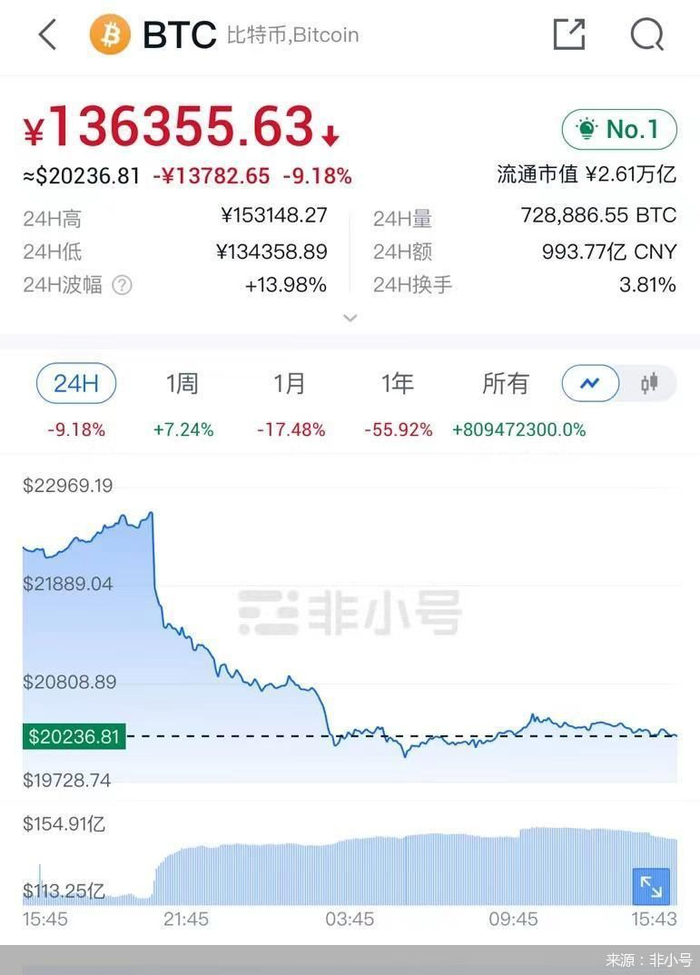 “受加息预期影响,虚拟货币市场也会信心大挫,另叠加没有相关的管理部门监管,没有相关的规则体系限制,就很容易出现相互踩踏,价格越跌抛售的人越多,抛售越多价格又会进一步下跌,从而市场会更恐慌,形成恶性循环,导致价格持续下跌。”王鹏说道。