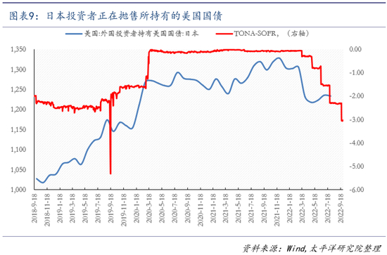按照上述公式所计算的日元套息中长端美债的交易在7月份就已不再具有收益,而短端美债的套息收益也已基本归零。这主要是因为在美元流动性大幅收紧以及日美汇率剧烈波动下,融入美元的成本已经变得昂贵,使得日美息差即使很高的情况下,依旧没有收益。从日本投资者的美债持仓来看,日本持有美债的金额不断下降也可以说明之前火热的套息交易正在逆转。