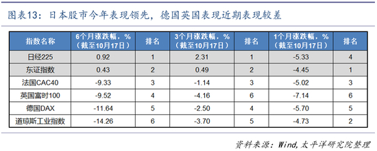 配置建议:日元套息交易停止进一步使得实际利率易上难下,国际股市仍将承压,财政政策混乱的英国以及受能源危机影响最严重的德国股市预计表现更差。日本在宽松政策持续、通胀压力较欧洲更小的背景下,预计表现相对较强,可进行空英国、德国股市多日本股市的对冲操作。