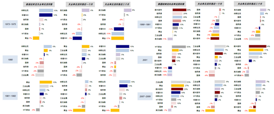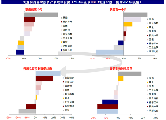 图表:衰退前后(叠加通胀拐点)资产表现一览