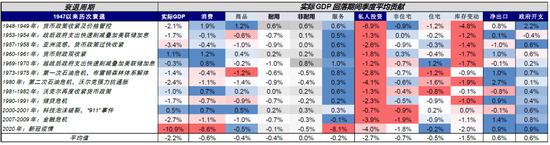 通过计算衰退期间实际GDP分项季度贡献,我们发现消费、投资及政府开支的平均贡献分别为-0.6%、-2.7%及0.6%。这表明衰退对消费存在抑制,但其中非耐用消费品仍有韧性。政府开支在过去12次衰退中仅1次为负,表明政府往往加大财政支出应对经济下行。相比之下,私人部门投资在过去12轮衰退中均对经济产生明显拖累且幅度显著高于消费和政府支出。