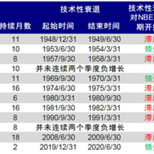 图表:每次技术性衰退均对应NBER衰退,但反之并不必然