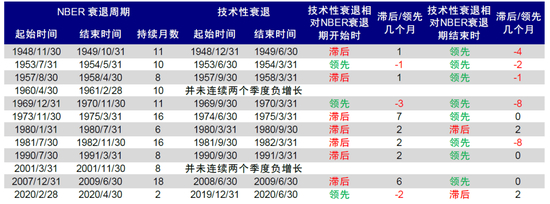 从历史经验看,“技术性衰退”通常都意味着NBER定义真正衰退也会出现,但反之并不成立。1948年以来NBER定义的衰退总计12次、实际GDP连续两个季度负增长的技术性衰退总计10次。可以看出,每次技术性衰退均对应NBER衰退,但反之并不必然。