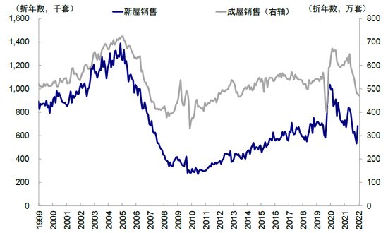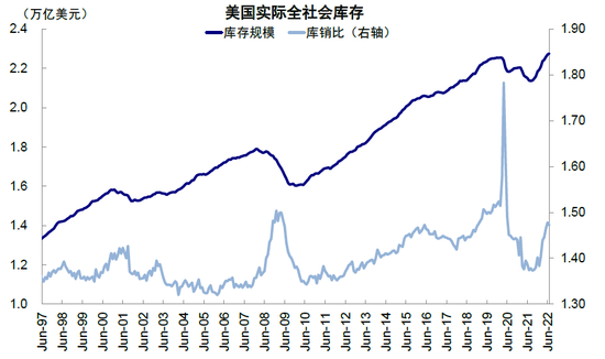 最终走向衰退可能是大概率事件,这是由当前加息速度和幅度所决定的。金融条件快速且大幅的抬升,本身就会对增长和需求产生抑制,只不过需要一段时间得以显现。当前,美国经济已开始逐步趋弱,而且由于此次美联储紧缩步伐很快,融资成本快速抬升对增长的抑制效果也会逐步显现出来,只不过存在一定时滞,因此最终出现衰退可能也是大概率。具体来看,1)对利率最敏感的地产板块已经明显降温。2)企业进入主动去库存周期。3)居民商品消费趋缓。