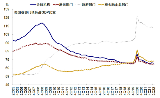 图表:当前美国主要宏观各部门的资产负债表除了政府部门和局部企业部门外,都并不处于高位