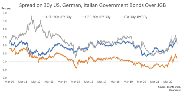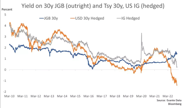 从表面上看,这种转变应该增加了日本对外国债券的需求。即使在去年12月日本十年期政府债券收益率上限从25个基点意外上调至50个基点之后,日本投资者在无对冲的外国债券投资中显然可以获得比2021年底可能获得的更大的收益率提升。