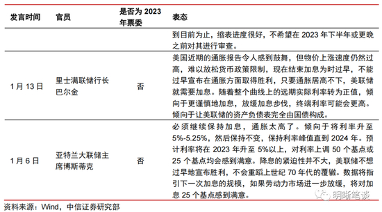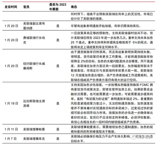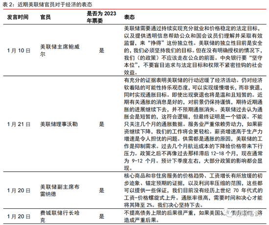 货币政策立场方面,美联储继续表示“持续提高目标区间将是适当的”以及“在确定(利率)目标区间未来增长时,委员会将考虑货币政策的累积收紧、货币政策影响经济活动和通货膨胀的滞后性以及经济和金融发展”。在去年11月议息会议的声明中美联储在“持续提高目标区间将是适当的”后新增“以实现足够严格的货币政策立场,能够随着时间的推移将通胀率恢复到 2%。在确定(利率)目标区间未来增长时,委员会将考虑货币政策的累积收紧、货币政策影响经济活动和通货膨胀的滞后性以及经济和金融发展”的表述,今年2月议息会议中继续保持该表述不变。对于美联储此次货币政策变动没有美联储官员投票反对。