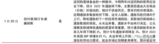 通胀方面,鲍威尔表示:现在第一次可以说,反通胀进程已经开始,反通货膨胀趋势必须在整个经济中展开,反通货膨胀进程处于早期阶段,反通货膨胀压力已经浮现,特别是在商品方面,约占核心PCE通胀四分之一的商品通胀正在下降,因为供应链已经修复,需求正在转向至服务并且短缺已经减少。另一方面如果新租约继续疲软,预计住房服务项通胀将继续上升几个月,然后下降。但在核心PCE通胀中占比56%的除住房外的核心服务项还没有看到反通货膨胀,除住房外的核心服务向包括七八种不同的服务,有研究表明其中60%对经济疲软、劳动力市场敏感,而一些服务部门通胀水平对其不敏感,例如金融服务业通胀,预计核心服务业将很快出现反通货膨胀过程。3个月的核心个人消费价格通胀指标现在相当低,这是商品项显著负读数驱动的,大多数预测者认为这种显著的负读数将是暂时的,商品通胀会很快上升至其长期趋势,大约为零。许多预测认为核心PCE将在年中回至4%。过去3个月的通胀数据显示,通胀放缓是可喜的,但需要更多的证据。降低通货膨胀可能需要低于趋势的经济增长。如果劳动力市场没有达到更好的平衡,通胀不会可持续地回到2%长短端通胀预期似乎很稳定,这令人安心。美联储在通胀描述中将疫情影响删去,这是因为不需要在议息会议声明中表示这是一个持续的经济风险。
