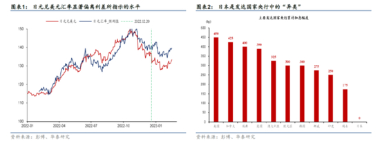 从全球宏观基本面来看,继续实施超宽松货币政策使日央行成为少有的“异类”。2022年以来,主要发达经济体央行均普遍大幅加息抗通胀,日本通胀虽然仍低于美欧,但也上升至过去40年以来的高点,但日央行仍然坚持YCC框架,并没有启动加息(图表2)。