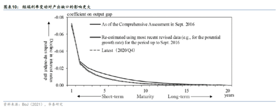 第二,锚定3-5年期国债利率,货币政策仍然较为宽松,且同样会遭遇投机压力。日本是银行为主导的金融体系,对货币政策传导影响最大的是短端利率。根据日本央行的研究,短端利率变动对于产出缺口的影响更大(图表10)。因此,锚定3-5年期国债利率仍然可以保证货币政策宽松,同时减少对长端国债定价的扭曲。但是,当前日本已经摆脱通缩,继续实施超宽松货币政策的必要性下降,锚定3-5年期国债收益率仍然是宽松货币政策,与日本央行货币政策正常化的意图不符合。此外,锚定3-5年期不能解决投机问题,投资者可能会继续抛售3-5年期国债,日央行不得不继续干预国债市场。