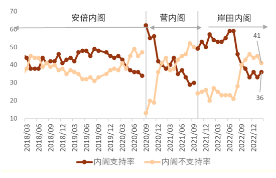 内阁支持率筑底成功 NHK的民调显示2月岸田内阁支持率为36%,相较上月有所改善(图表25)。3月期间日本国会将会就日本央行正副行长的人事提名进行投票,目前市场共识认为出现风险的可能性很小。此外,3月26日日本还将有数个地区出现地方性选举。