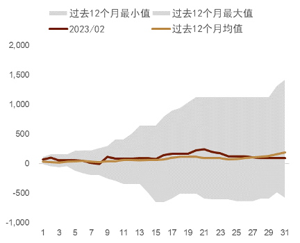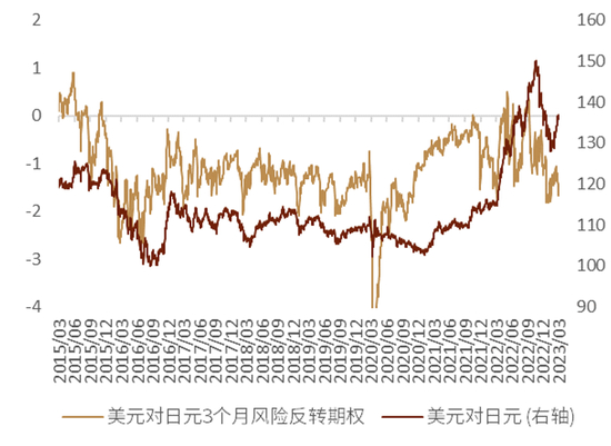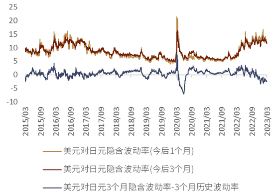 美元对日元在2月期间虽然波动有限,但在日本央行大幅调整或放弃YCC的背景之下,美日汇率的隐含波动率还在持续上升。我们认为直至日本央行实际做出行动之前,美日汇率的隐含波动率或依旧维持在高位。