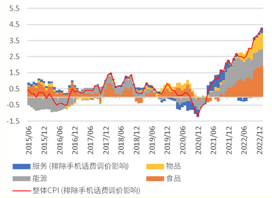 日本通胀出现见顶迹象 日本总务省公布的1月全国CPI显示综合CPI同比增长4.3%,为1981年以来的最高值。4.3%的综合CPI同比增长中,食品贡献了约1.9个百分点、能源贡献了约1.0个百分点、物品贡献了约1.0个百分点、服务贡献了0.3个百分点(图表18)。日本的通胀当中成本推升的比率正在逐步变小,日本央行所期待的需求拉动型通胀正在逐步形成。虽然目前日本全国的1月通胀依旧处于高位,但是作为先行指数的东京2月CPI已出现见顶迹象(图表19)。东京地区2月综合CPI、核心CPI(除去生鲜食品)分别为3.4%与3.3%相较1月下行了1个百分点,下行的主要原因来源于日本政府对电费、煤气的补贴。但需注意的是通胀的见顶仅是政策主导后的能源价格的下行,除去生鲜食品与能源的超级核心CPI依旧处于上升趋势(图表19),日本央行货币政策更为注重此类通胀。此外,日本劳动组合总联盟(JTUC)对全国2000多个工会的调查显示,今年工会平均要求加薪4.49%,该数字虽为1998年4.36%以来的最高值,但仍低于此前提出的5%目标。我们认为今年的工资上调可以一定程度改善日本实际工资减少的现状,但是能否形成需求拉动型的通胀,我们认为还有待观察。