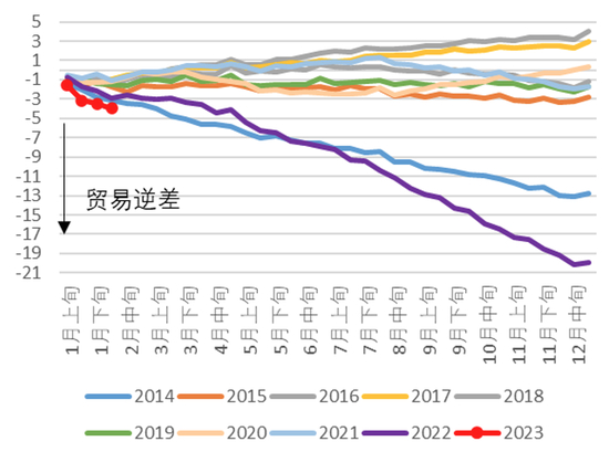图表20:年初以来日本贸易收支的累计值 (万亿日元)