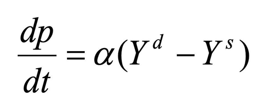 其中p、t、Yd 、Ys分别代表物价、时间、总需求和总供给,α为一正常数。从式(1)可推出: