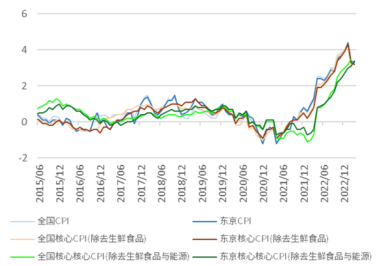 图表26:日本全国与东京地区的CPI同比走势 (%)