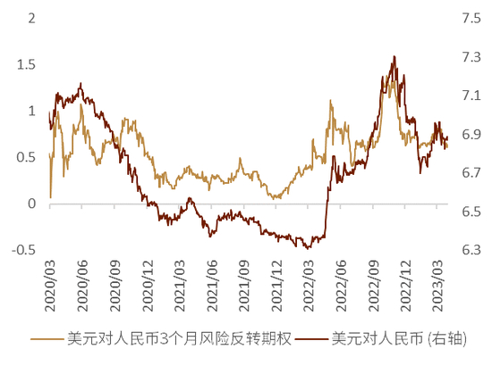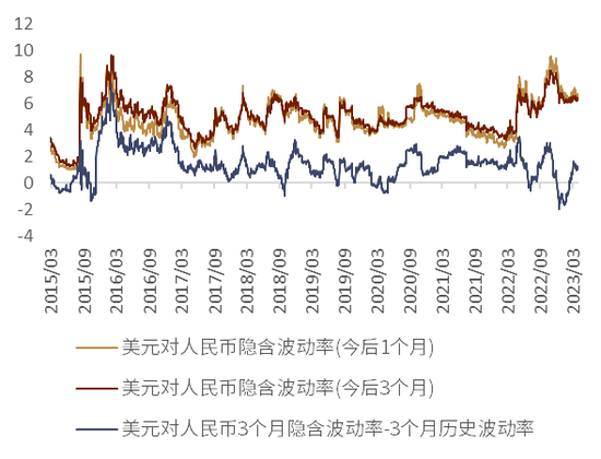 美元对人民币在3月波动较小,隐含波动率也依旧基本走平,反映出市场目前并不担心人民币汇率大幅波动。