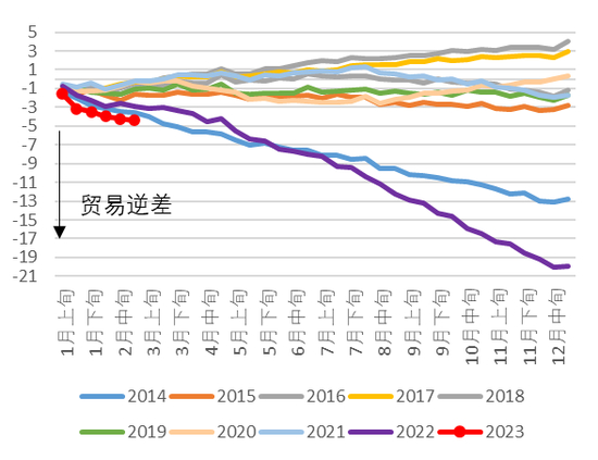 图表27:年初以来日本贸易收支的累计值 (万亿日元)