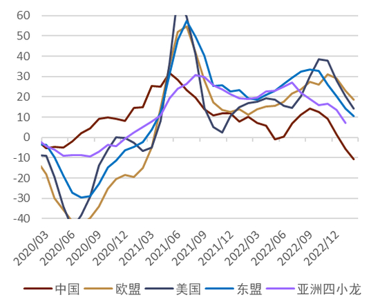 图表28:日本对主要经济体的出口同比 (%、移动三个月平均)
