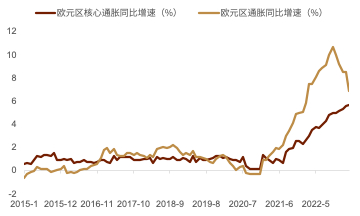 关注瑞信事件之后市场风险偏好的演变 受自身业绩不佳以及美国银行业风险事件的风险情绪传染,瑞信股价在3月出现大幅下跌,而其随后在SNB的指引下被UBS的折价收购也拖累了欧洲银行板块和欧元表现(图表21)。此后瑞士央行向其提供流动性的支持使得市场风险情绪有所修复,而随着SNB和ECB纷纷在其议息会议上做出安抚市场的表态并且选择优先抑制通胀压力进而继续加息,市场对此的担忧略有减弱(欧洲银行板块自月内低位有所反弹,离岸美元流动性的紧张情况也有所缓解: FRA-OIS利差,欧元basis swap互换利差都脱离了月内极端点位(图表22)。向前看,在ECB大幅紧缩周期的背景下,我们不能排除银行业再次出现风险事件而引发市场风险偏好的急剧走弱,而欧元也可能会受到影响而无法持续走高。