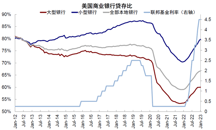 图表3:相比大银行,小银行持有证券占比更低、贷款占比更高