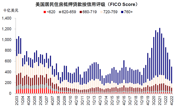 3)当前美国居民房贷信用评级(FICO Score)较为健康。(FICO Score在760+占比仍达62% vs. 2008年金融危机爆发前的23%)。