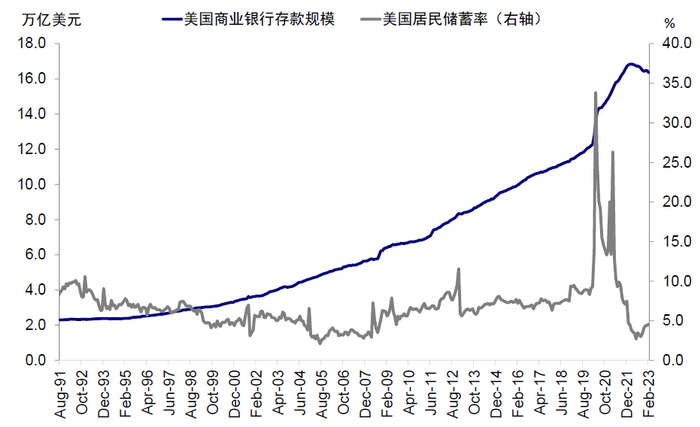 图表7:2020年疫情后流动性的进一步大幅释放更是使存款从12.1万亿美元快速升至2021年末的16.7万亿美元