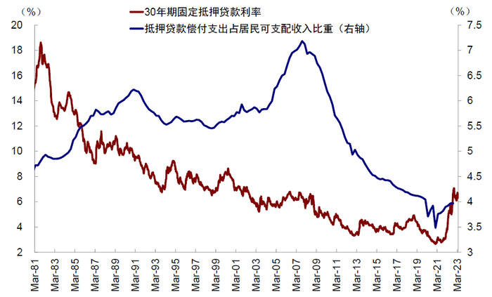 2)当前美国居民部门整体杠杆及房贷杠杆均不高。(居民部门2008年金融危机后去杠杆明显,债务占GDP比例已从2008年的99%降至当前的73%、抵押贷款偿付支出占居民可支配收入比例从2008年的超7%降至当前的不到4%)。