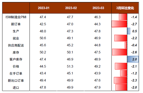 图表:美国ISM制造业与非制造业PMI均有所下滑,尤其是非制造业新订单、新出口订单分项均大幅下挫