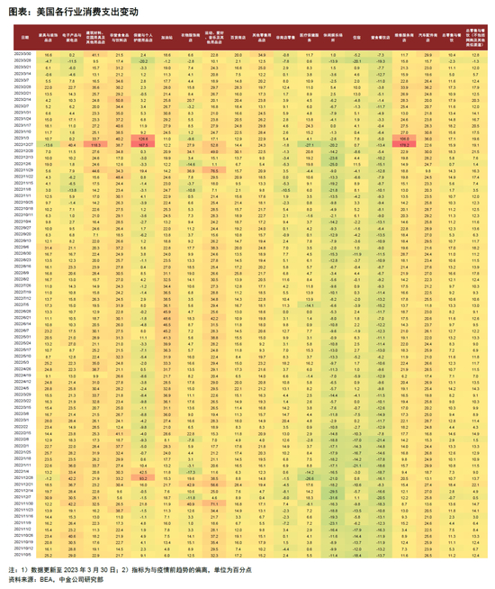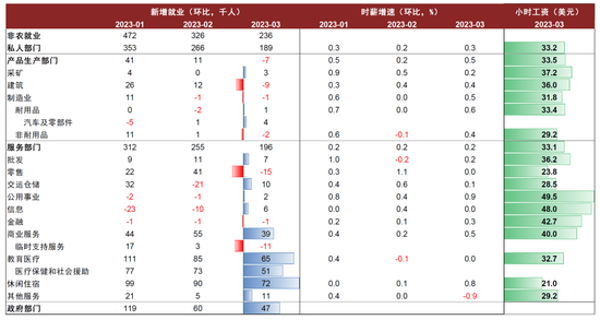 图表:美国分行业非农就业与工资数据